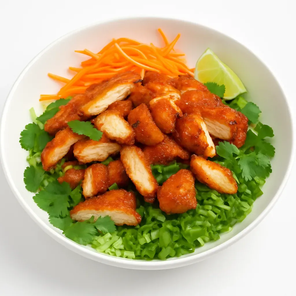 A light, high-protein salad featuring tender chicken breast dressed in a tangy sweet chilli sauce, perfect for a healthy meal.