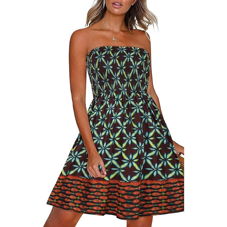 The CHICGAL Summer Dresses for Women Beach Cover Ups Strapless Boho Floral Print Sundress is made from lightweight and breathable materials, making it ideal for hot summer days. The dress comes in a variety of sizes to ensure a perfect fit for every body type. Whether you're lounging by the water or attending a pool party, this sundress is sure to turn heads and make you feel stylish and comfortable all day long.