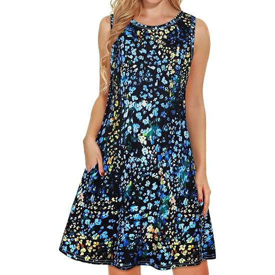 elescat Women's Summer Dresses 2025 Beach Casual Sleeveless Floral Print Tank Loose Sundress with Pocket