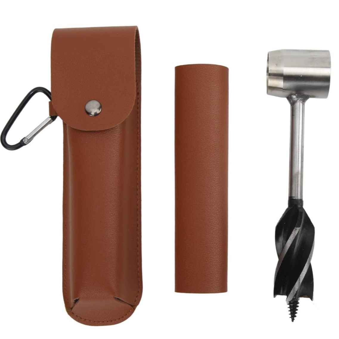 The auger wrench comes with a belt-attachable storage pouch for convenient storage and transportation. It features simple operation - just turn the wood auger to the desired location and use a wooden stick for leverage to drill. Constructed with durable, hardened stainless steel, this multi-tool is suitable for a variety of outdoor activities, including making fishing traps, chairs, wine glasses, and even cottages. It makes a great gift for outdoor enthusiasts and jungle craftsmen.