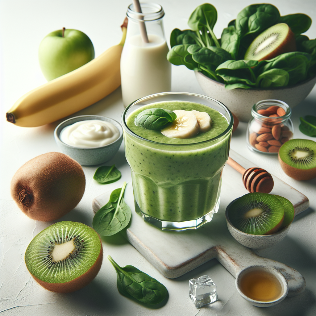 A Kiwi Smoothie is a refreshing and nutrient-packed beverage perfect for a quick breakfast or energizing afternoon snack. This vibrant green smoothie blends ripe kiwi fruit, which is rich in vitamin C and dietary fiber, with ingredients like banana for sweetness, fresh spinach for an iron boost, and Greek yogurt for a creamy texture and added protein. A splash of apple juice or almond milk can be added to adjust consistency and add a hint of sweetness. The result is a deliciously smooth drink that's as healthy as it is tasty, and it comes together in minutes for those on-the-go days.