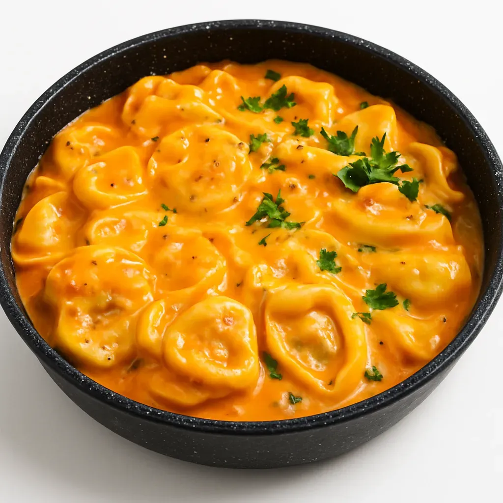 Indulge in the cozy embrace of a creamy cheese tortellini dish that promises comfort with every bite. This Italian-inspired recipe features a velvety smooth, orange-hued sauce that clings to tender cheese-filled tortellini, making it a perfect choice for a heartwarming meal.