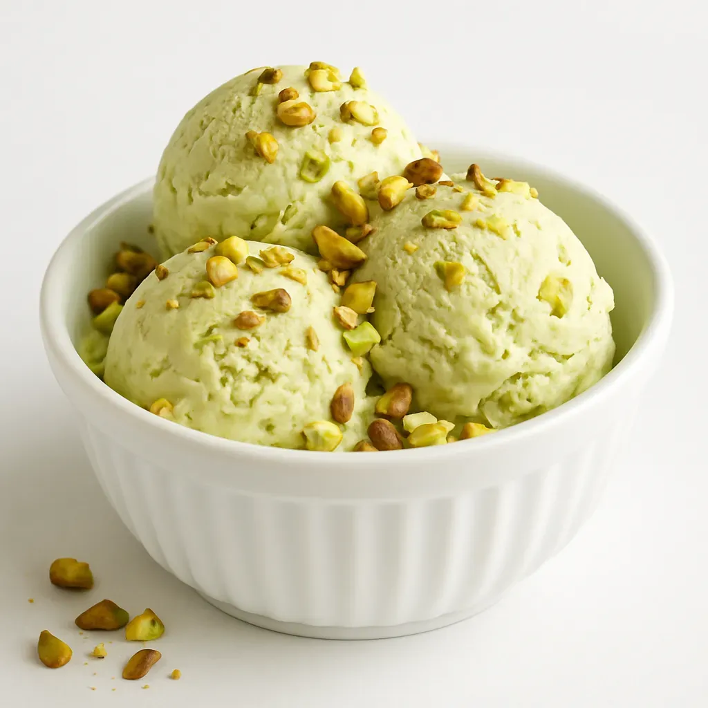 - Once frozen, scoop and serve the pistachio ice cream directly from the freezer container. Optionally, garnish with additional chopped pistachios for an extra crunch.