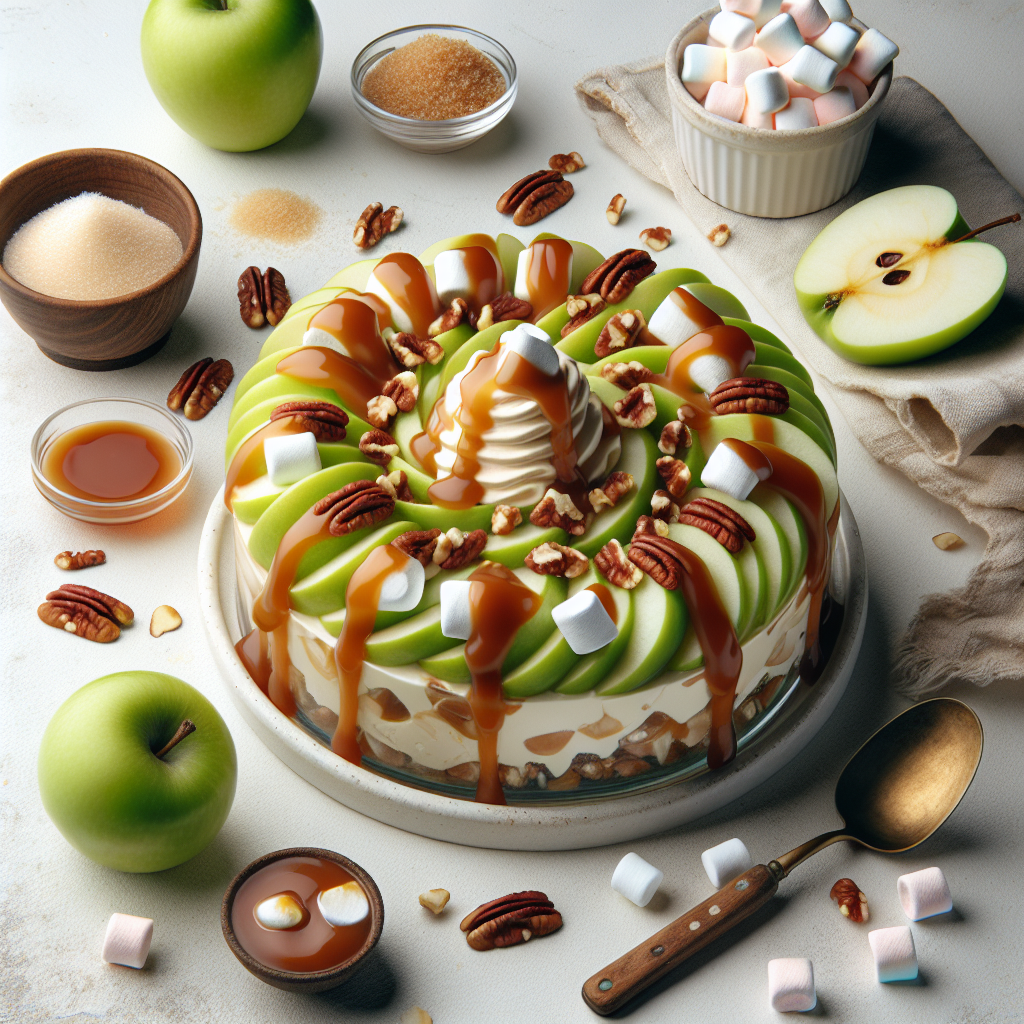 Caramel Apple Cheesecake Salad is a lusciously sweet and creamy dessert salad that combines the tartness of green apples with the velvety richness of cheesecake filling, all drizzled with smooth, gooey caramel. The addition of chopped nuts adds a delightful crunch, while miniature marshmallows offer a playful texture contrast. This indulgent salad is often a hit at potlucks and family gatherings, offering a twist on the traditional fruit salad. It's quick to assemble, can be made ahead of time, and is always a crowd-pleaser for those with a sweet tooth.