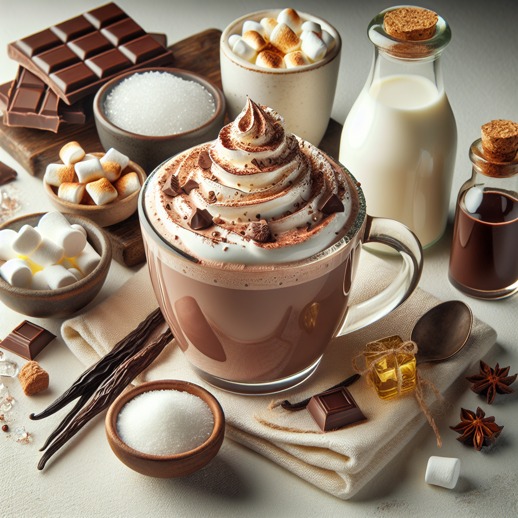 Homemade Hot Chocolate is a classic comforting drink made with rich cocoa powder, milk, and sugar, often enhanced with a touch of vanilla and a sprinkle of salt. This indulgent beverage can be made creamy with full-fat milk or dairy alternatives and can be customised with various toppings such as whipped cream, marshmallows, or a cinnamon stick. Perfect for chilly weather or as a treat to warm up any day, this recipe offers a cozy homemade twist to the traditional hot chocolate.
