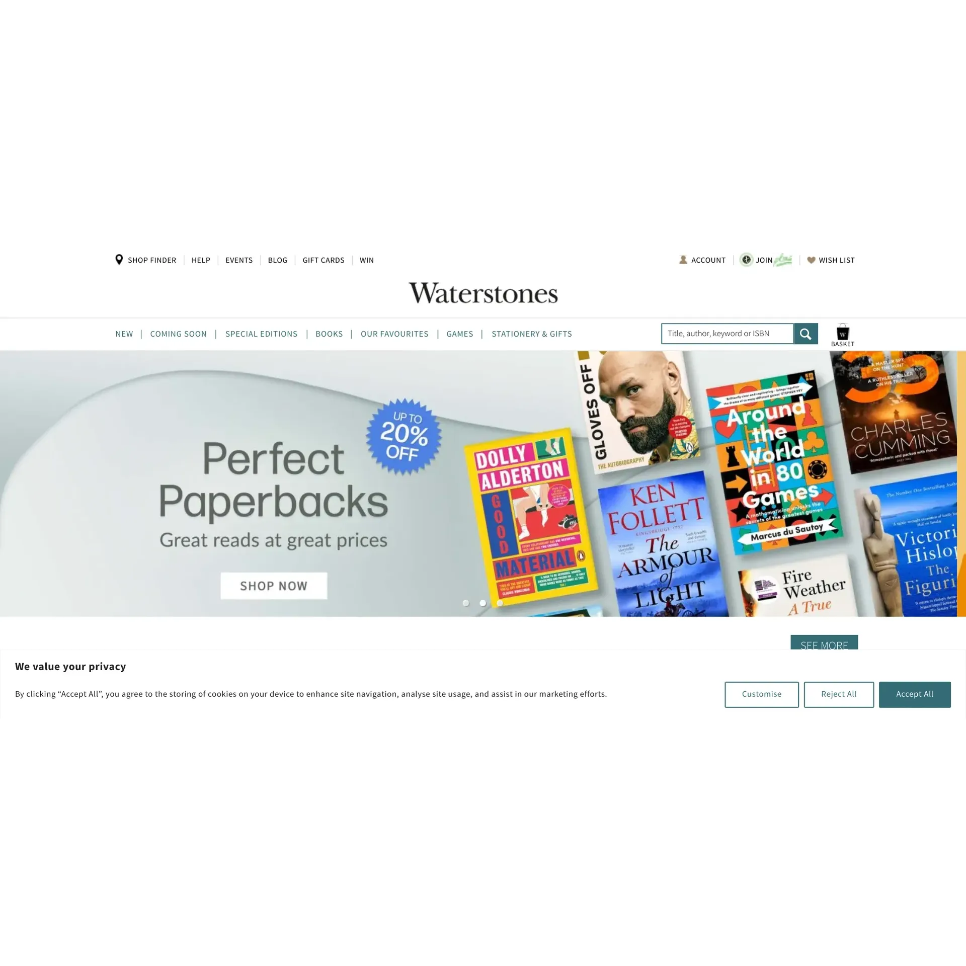 The company operates through both its brick-and-mortar stores and an online shopping website, waterstones.com, which provides a wide selection of books, stationery, and gifts. Customers can purchase a variety of titles, including fiction, non-fiction, children’s books, and textbooks, as well as e-books through the Waterstones e-reader app. The website also features author events, book signings, and a range of exclusive editions specifically curated by the Waterstones team.