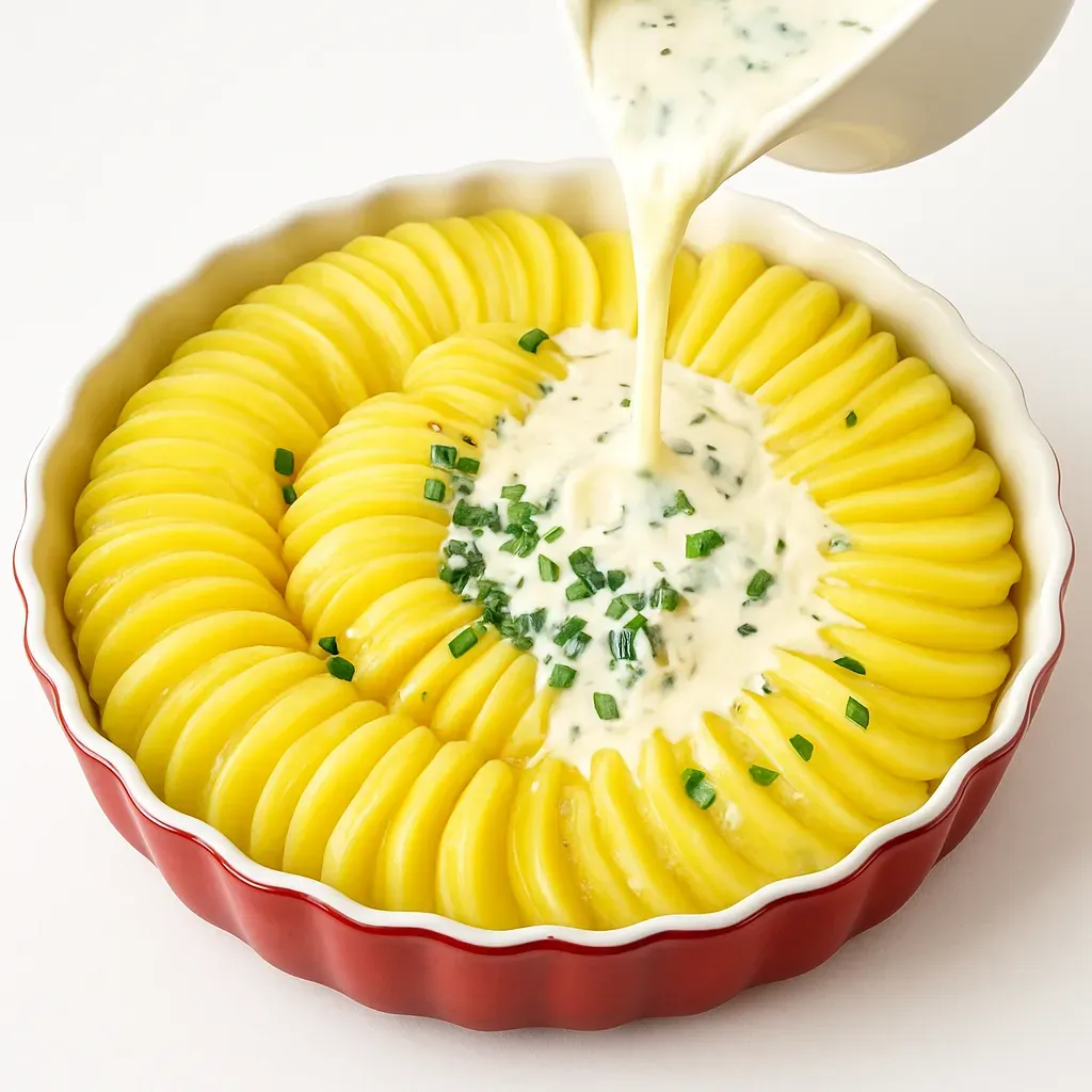 Indulge in the ultimate comfort food with this stunning Potato Gratin, a French-inspired classic that never fails to impress. Perfectly thin slices of potato are layered with a lush, garlicky, and scallion-infused cream, topped with golden, bubbling cheese.