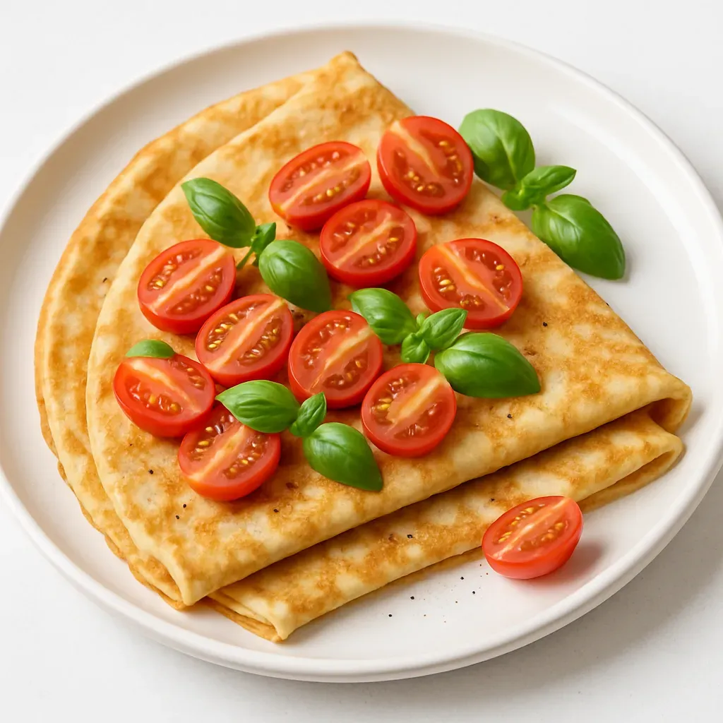 French Crêpes with Tomato is a savory twist on the classic French delicacy, combining the light and delicate texture of a crêpe with the fresh and tangy flavor of tomatoes. To prepare, a simple batter is made using flour, milk, eggs, and a hint of salt, which is then cooked on a flat skillet until golden brown on each side. The crêpes are then filled with ripe tomatoes, fresh herbs like basil or thyme, and a sprinkle of cheese, offering a refreshing and satisfying meal. Perfect for brunch, lunch, or a light dinner, these crêpes can be served with a sprinkle of freshly cracked pepper and a drizzle of olive oil for an added touch of flavor.