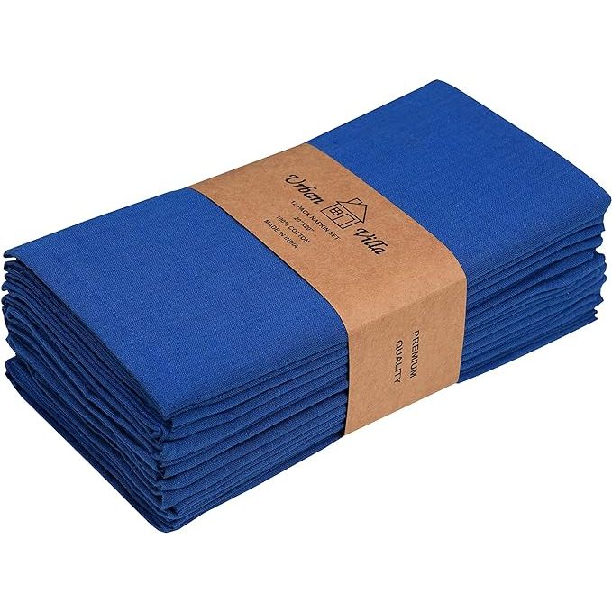 Urban Villa Dinner Napkins Solid Slub Set of 12 Royal Blue Color Premium Quality Dinner Napkins Size 20X20 in Cloth Napkins Cotton Cloth Napkins with Mitered Corners Ultra Soft Dinner Napkins